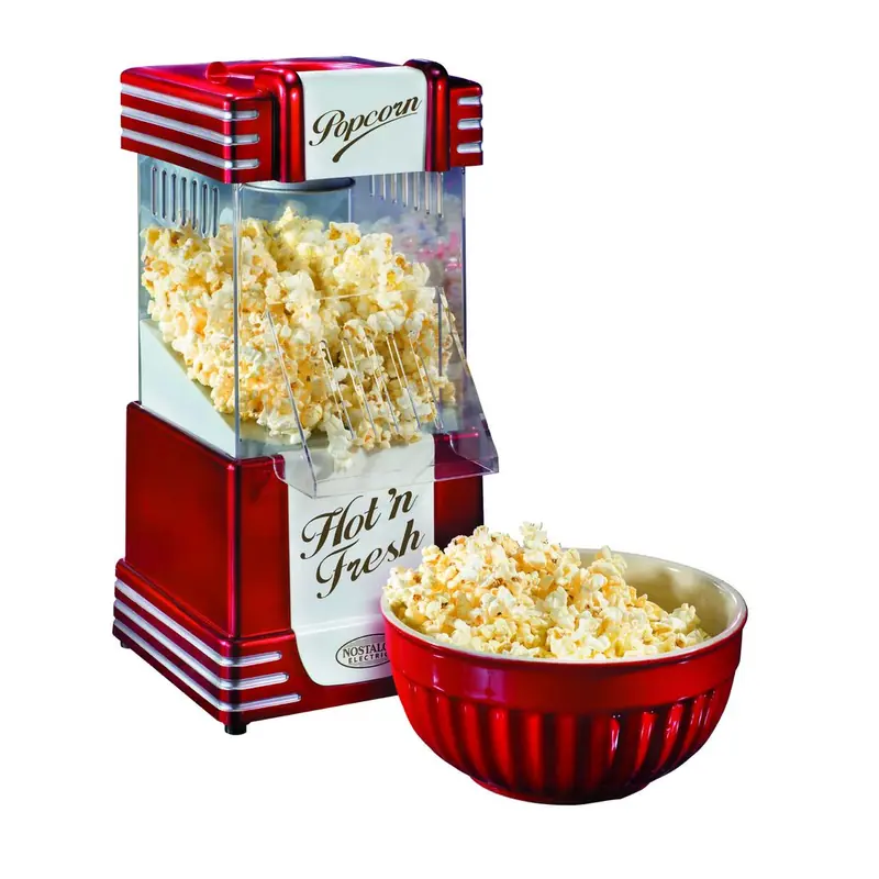 Retro aparat za kokice 1200W – Unesite retro šarm u dom i okupljanja, dizajn inspiriše osmeh, a performanse oduševljavaju goste. Aparat koristi vruć vazduh, pa kokice nastaju bez kapi ulja, rezultat je lagan zalogaj, idealan za film veče. Uz snagu od 1200W, jedno punjenje od oko 100g brzo puffne savršene zlatne pahuljice bez dima, nereda i nepotrebnih kalorija. Jednostavno sipajte zrno, pritisnite taster, začinite po želji, i poslužite toplu grickalicu porodici i gostima uz minimum truda.