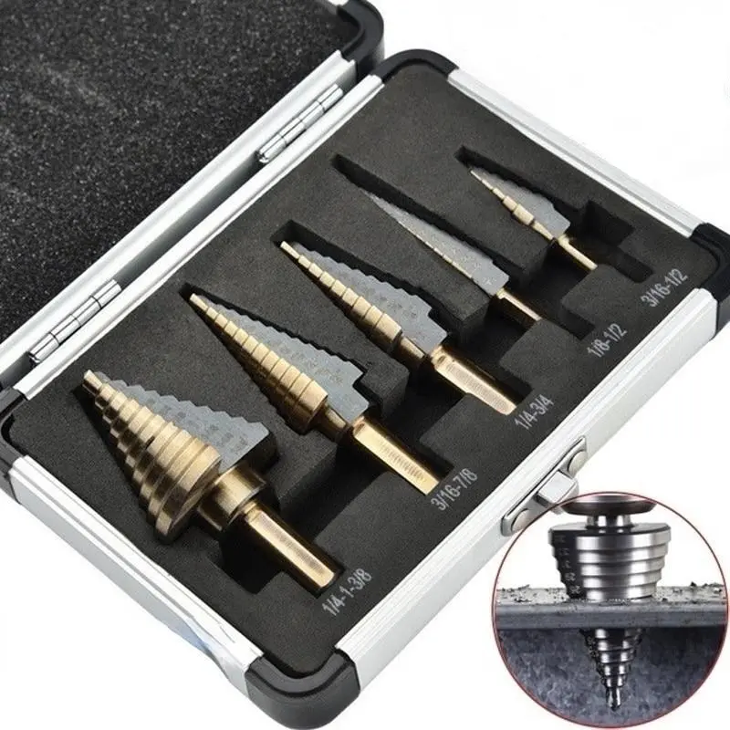 Ubrzajte svaki posao bušenja sa ovim setom od pet titanijumskih stepenastih burgija.