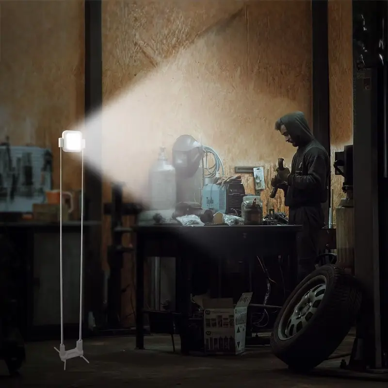 Ova lampa kombinuje snagu i praktičnost u jednom kompaktnom uređaju. Podesivi metalni nosač omogućava podešavanje visine do 165,5 cm, pa lako možete prilagoditi osvetljenje prema potrebi. Bilo da je postavite visoko za osvetljavanje većeg prostora ili nisko za fokusirano svetlo, ova radna lampa se lako prilagođava svakom zadatku.